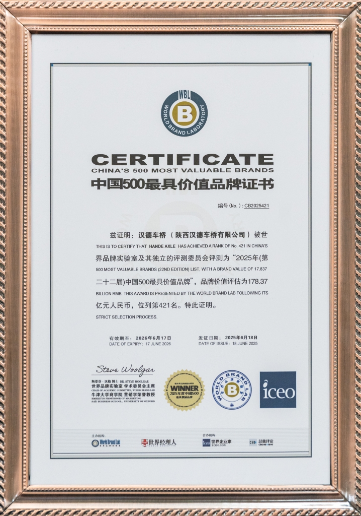 漢德車橋將持續創新,追求卓越,以“為全球客戶提供更可靠、高效的車橋產品,為員工創造美好生活”為使命,推動“中國智造”邁向高端。